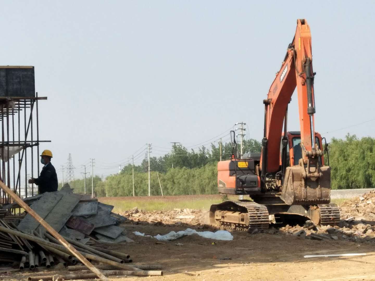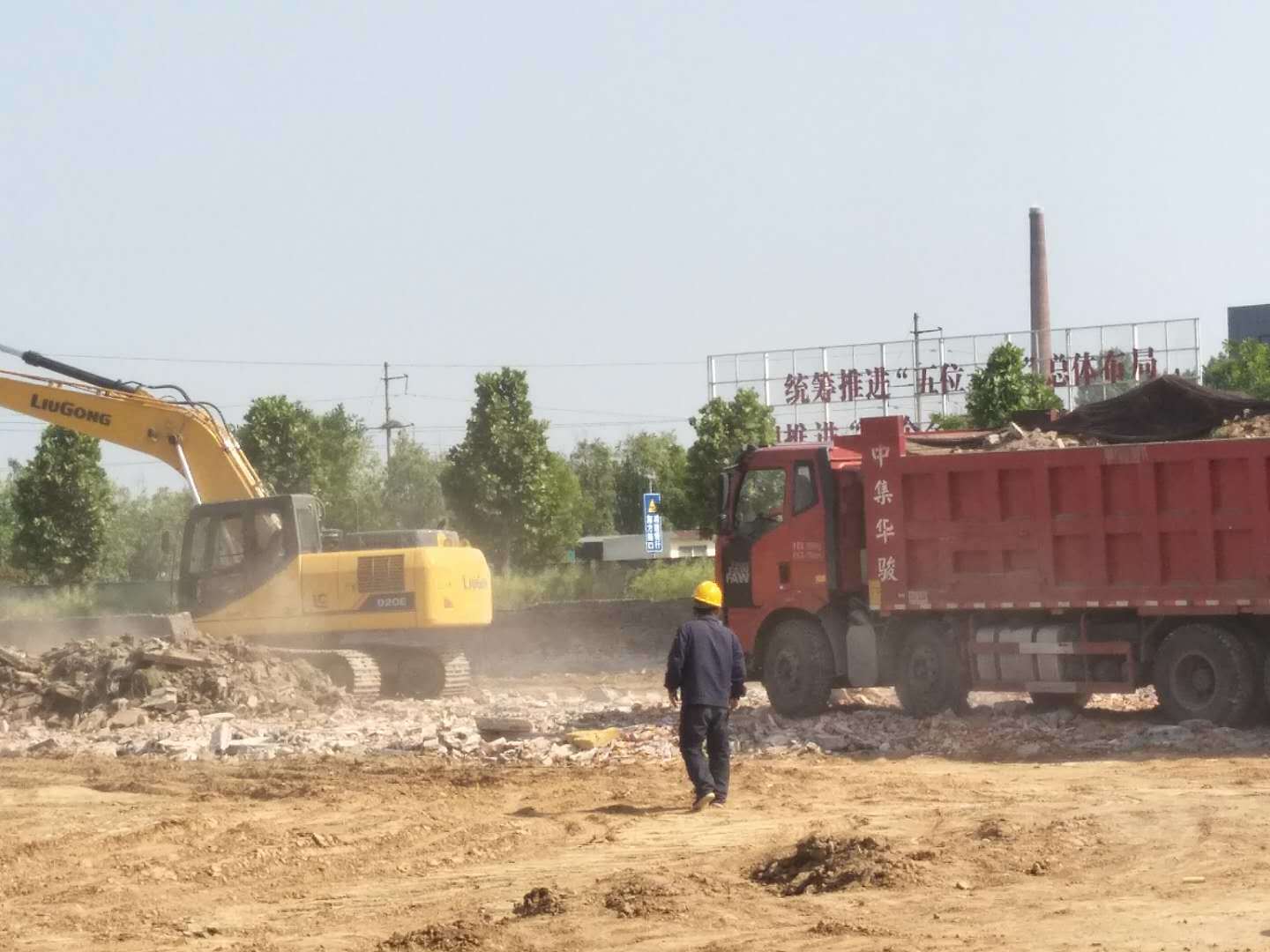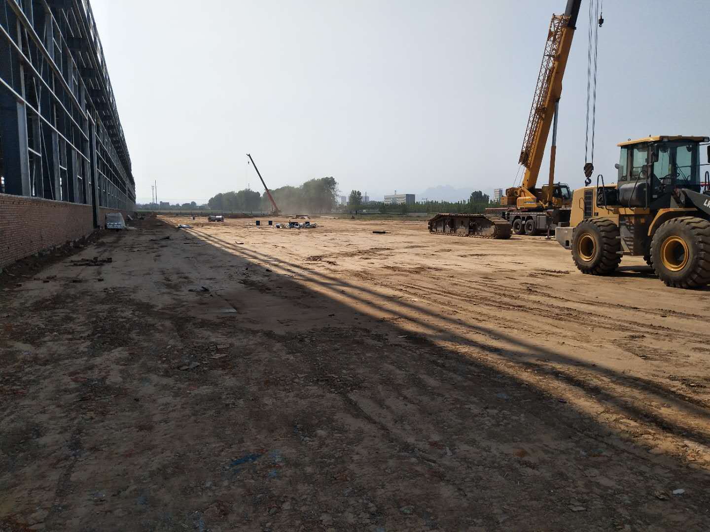 从2020年4月11日起,公司王加加经理带领工程技术部牛新安、张亚运、铲车班李东哲、卢朋帅以及外调铲车、挖机先行进驻工程现场。测量、路基开挖、砖渣调运、洒水湿法作业全面展开。