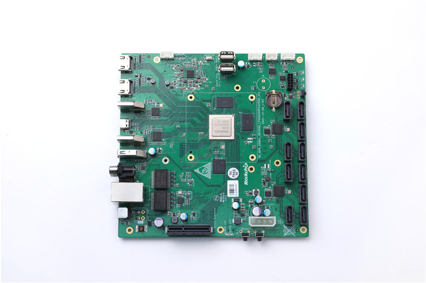 RK3588标准开发板支持10*SATA接口,支持1个超高清输出接口,输出4K@60fps、支持1个高清输出接口,输出1080P@60fps,支持2个千兆网口,1个Pcie3.0接口,另外USB Host、HDMI、USB3.0、JTAG、IR、TYPE-C、RS232、RS485、RTC等接口。